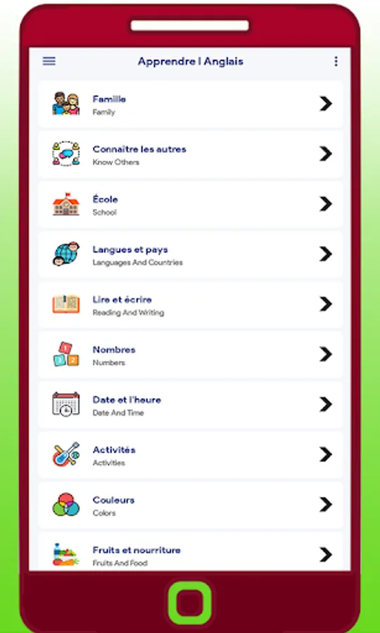 It has very simple features and easy to use. French phrases app is best app to learn English pronunciation for beginners. You can learn about fruits and vegetable names quickly.