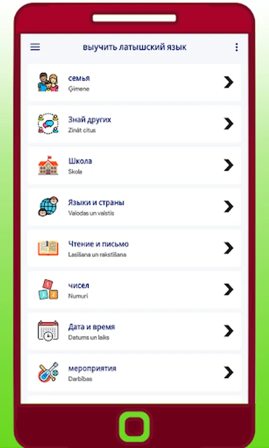 Изучение Латышского Алфавита бесплатно для всех пользователей. Вы можете выучить сложные предложения и фразы в кратчайшие сроки. Изучение Латышского Языка приложение полезно для бизнесменов и путешественников, чтобы изучить основы иностранного языка. Пользователи могут изучать латышский язык и его самый простой и лучший способ выучить латышский алфавит и грамматику для начинающих. Учите Латышский Бесплатно также полезно для изучения глаголов и словарного запаса. Он прекрасно работает как в онлайн, так и в автономном режиме.