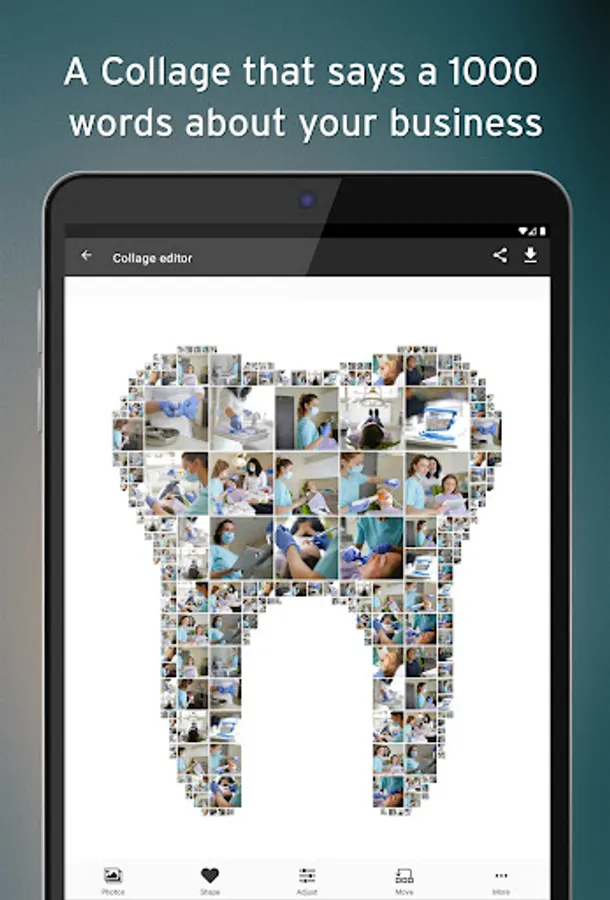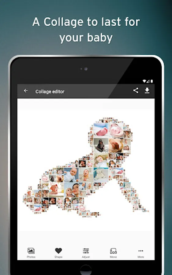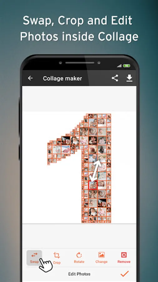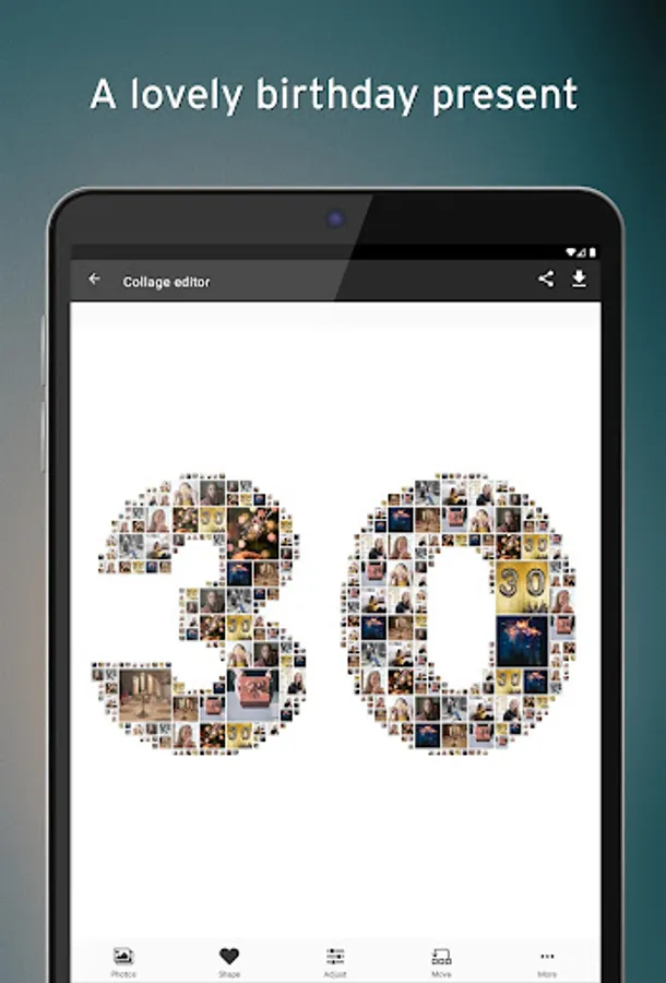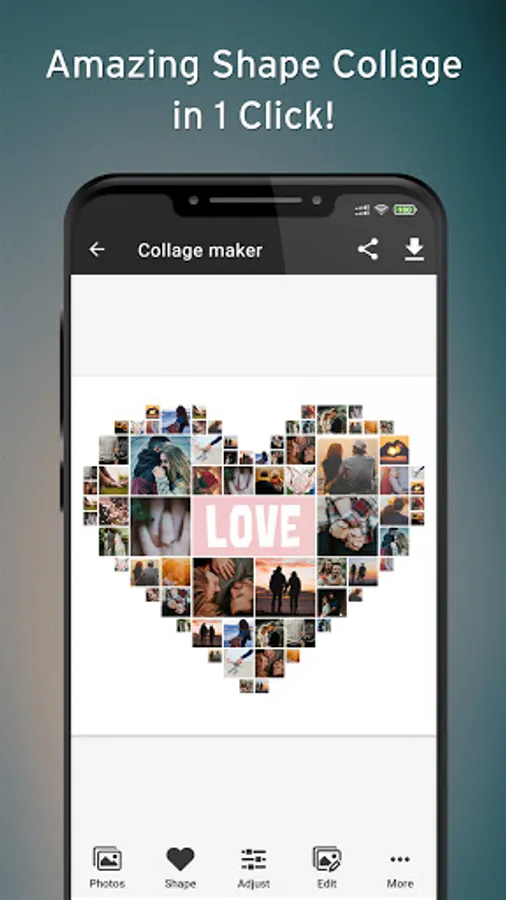 Phinsh (Photos In Shape) Collage Maker is a Shape Collage Maker that uses a novel approach to place your photos in any shape you want using a photo grid with unlimited number of photos.