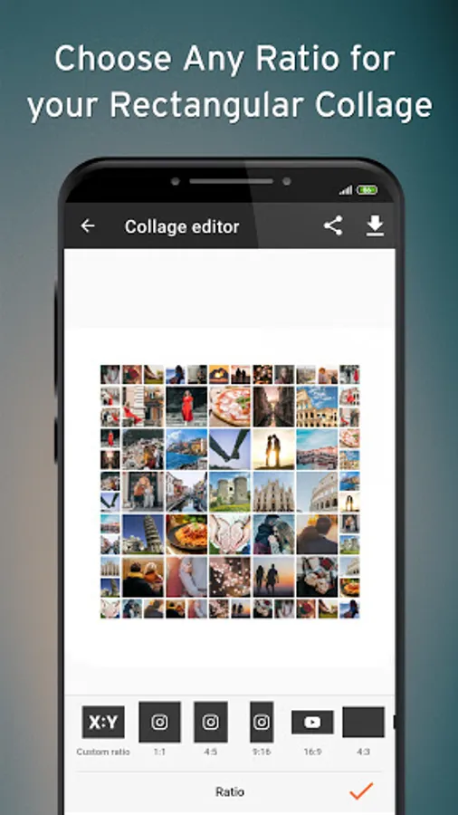 ★ Many predefined aspect ratios and custom ratios for Rectangular Photo Collage.