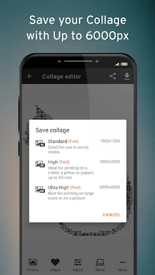 ★ High resolution saving (up to 6000 x 6000px on any smartphone!) (Extra feature).