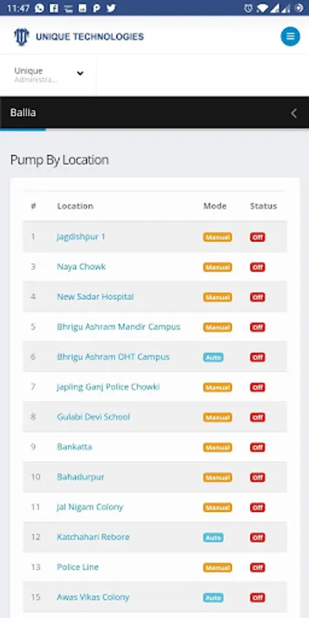 Monitor the Ballia based Water Supply Scheme on your smartphone. Developed by Unique Technologies.