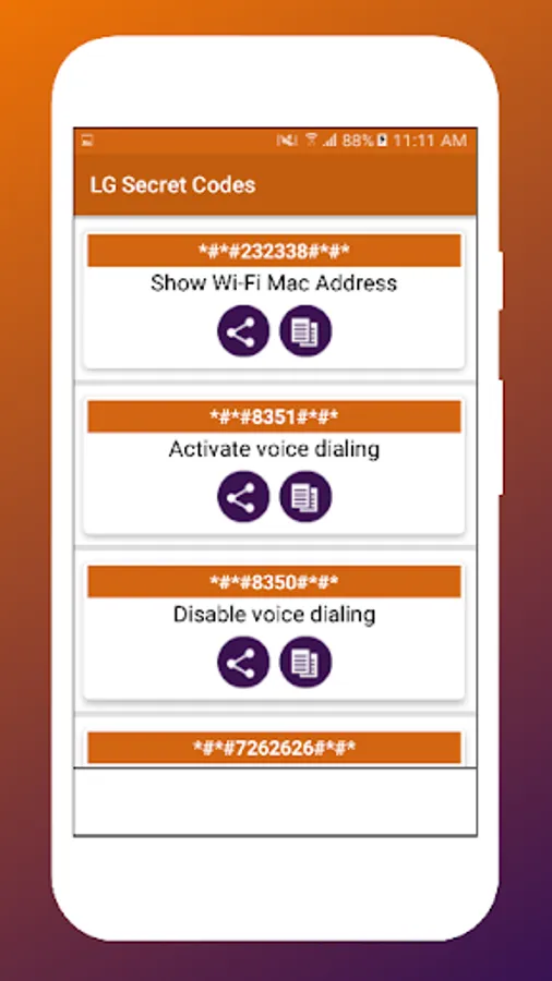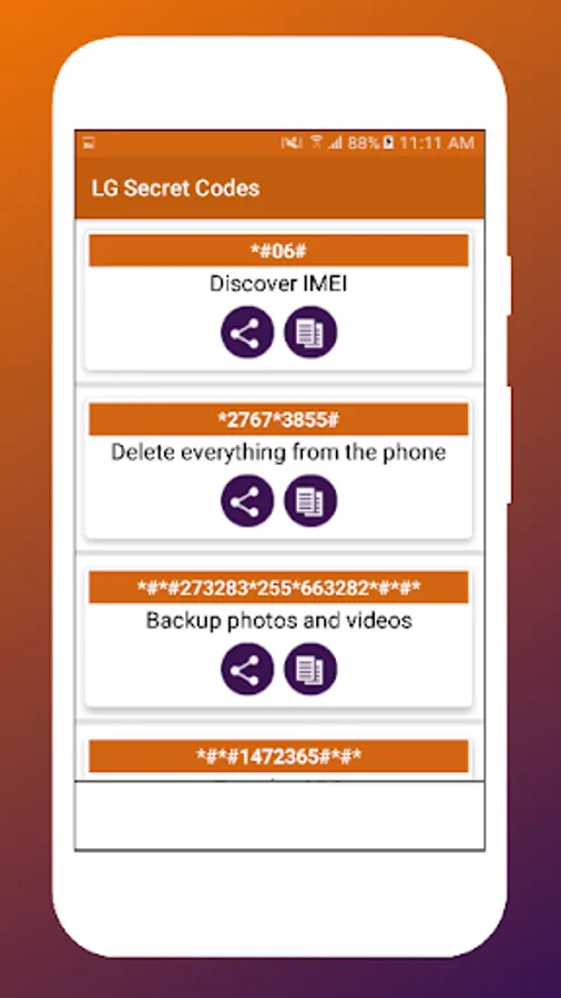 Check all android secret codes include Network, WLAN test, Firmware version information, factory tests, PDA, display the IMEI number, Super Mode, Check Update, Reset Device, Unlock the device, Recover Forgotten pattern, Engineering mode, GPS test mode, Machine information, Test Photograph RGB and much more factory reset, sim lock, sim unlock , Phone information Battery history ,Usage statistics and Wifi information, Discover IMEI,Turn off your smartphone, Display device information, Display Firmware Information, Show Wi-Fi Mac Address ,Access the Gtalk service, Access Email Informatio, View calendar events ,Camera Information ,Internal lighting test, Screen Testing, ,Touch Screen Information ,Version of RAM memory abd bluetooth test.