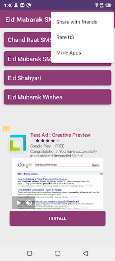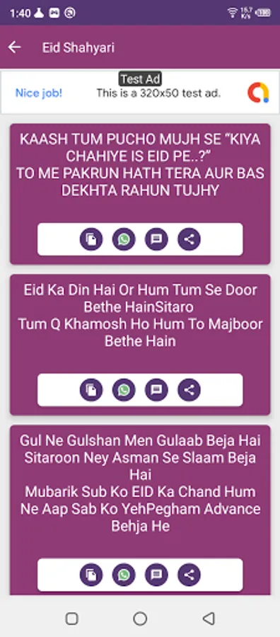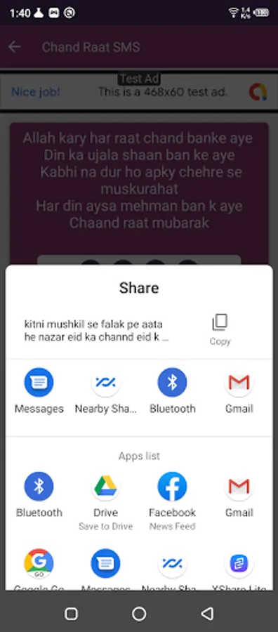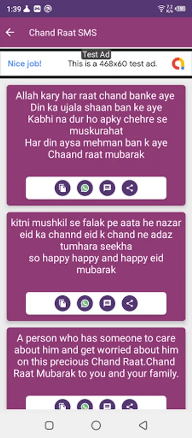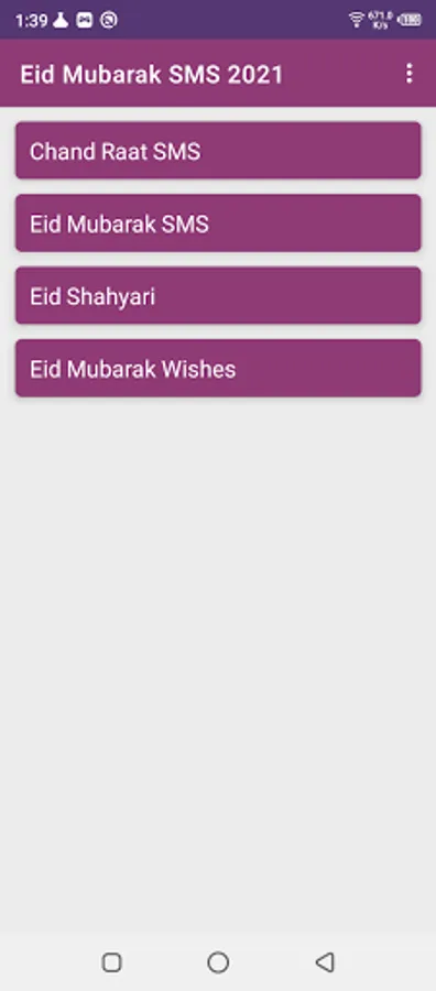In our App you will find four different Categories. Eid Greetings, Chand Raat Messages, Eid Shyari and Eid SMS. You can share greeting you like the most within our app. Read the most amazing and heart worming Eid and Chand Raat Greetings.