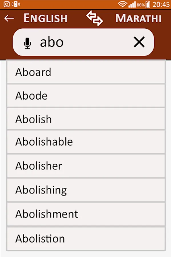 This app is a treasure for the people who want to learn English from Marathi or Marathi from English. The userinterface of this app is very user friendly.