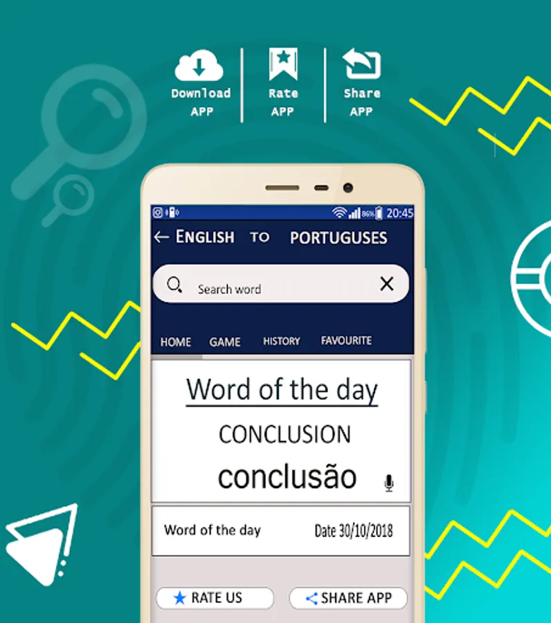If you want to Learn English from Portuguese or Portuguese from English so, this application English to Portuguese Dictionary is best for you. You are able to translate words in just a split second.