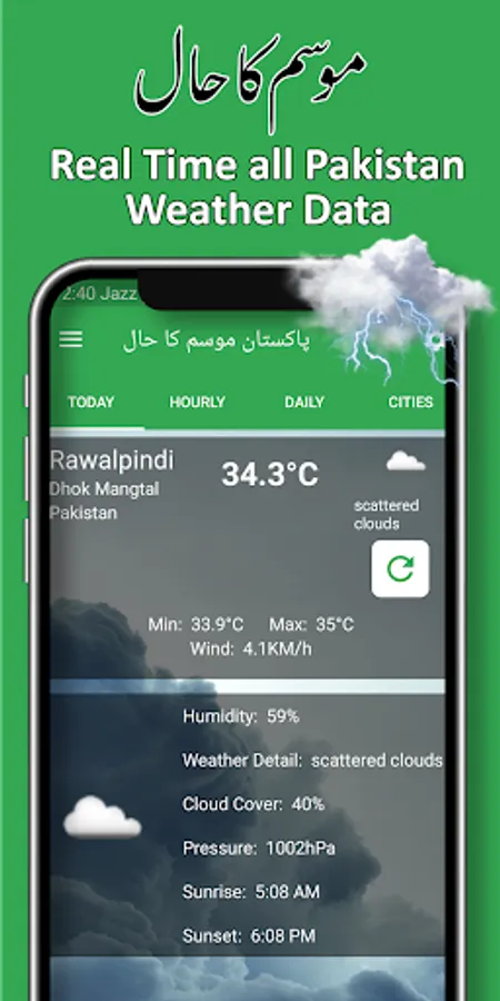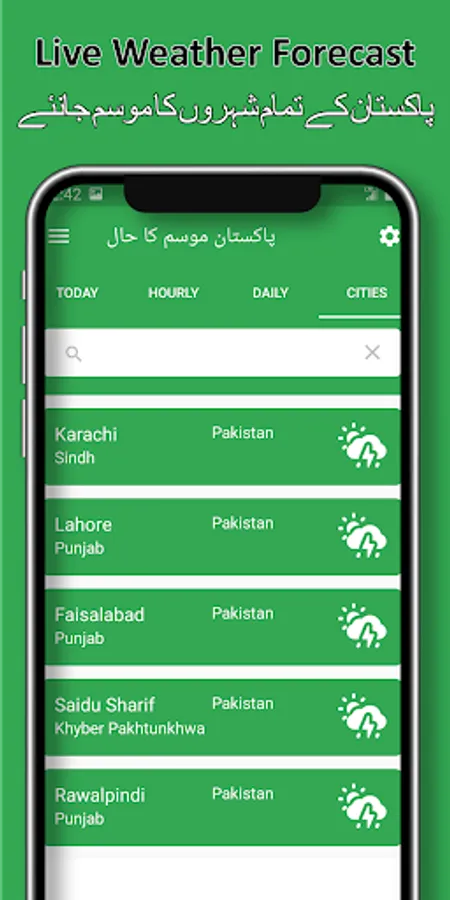 Weather today APP updating you the weather of your city. You can check the weather of all cities of Pakistan. Real time weather forecast provides you now, hourly and daily accurate weather information. This application weather forecast provides you daily hourly weather updates. This easy to use application is best for Weather Forecast for all cities of Pakistan.