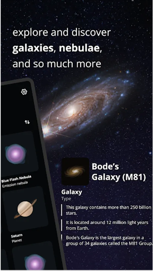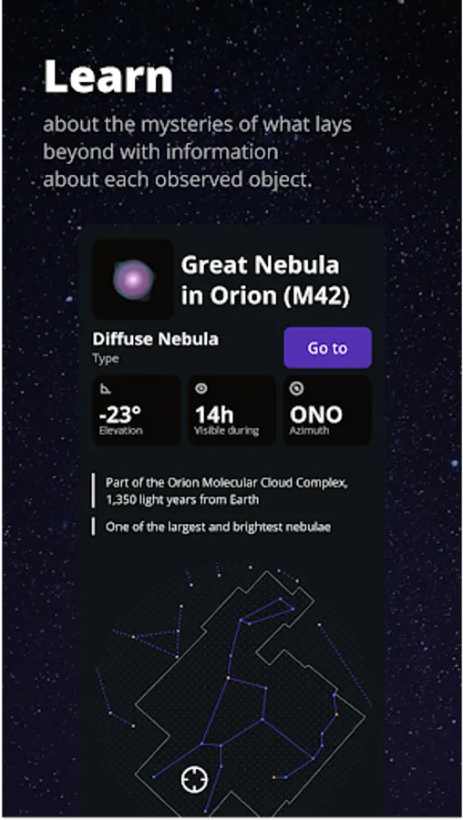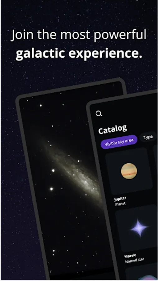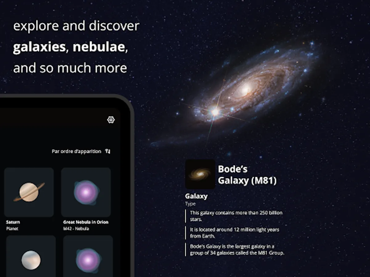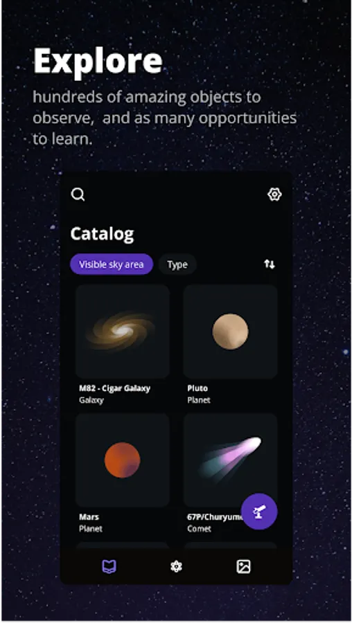 Explore the night sky : Choose an object (galaxies, nebulae, star and more) on the app and observe it, live. The Unistellar eVscope does all the pointing and tracking autonomously. Through the app, you can also set up your sky observation window.