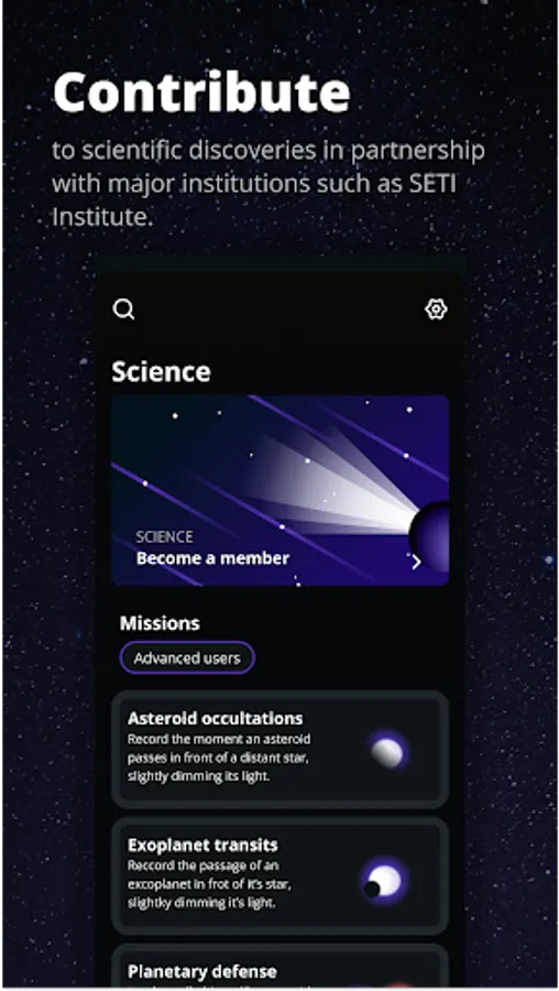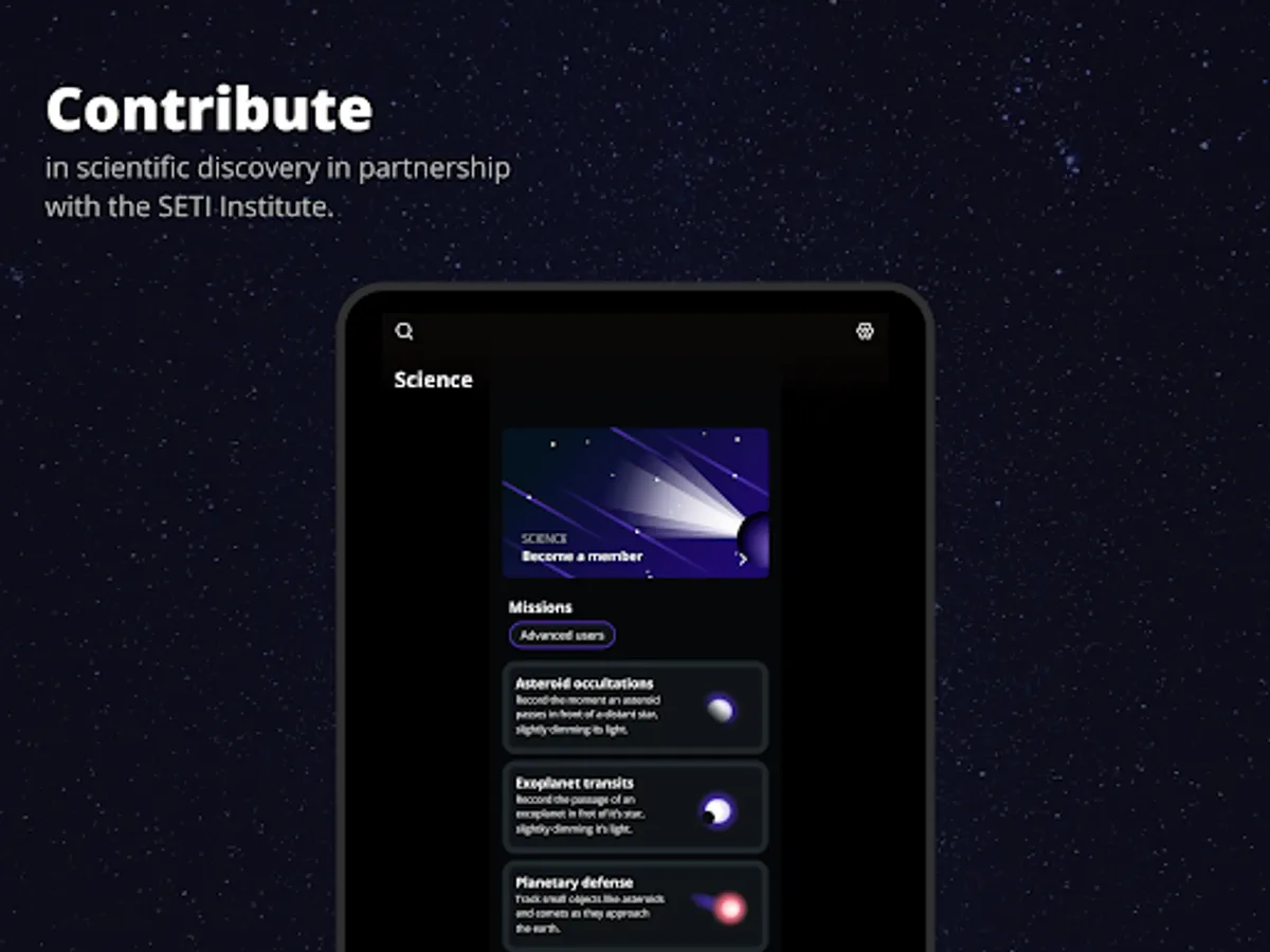 Become a citizen astronomer : In partnership with the SETI Institute, join the first global network of citizen astronomers, observing and contributing to scientific discoveries, from asteroid occultations to exoplanet transits and planetary defense.