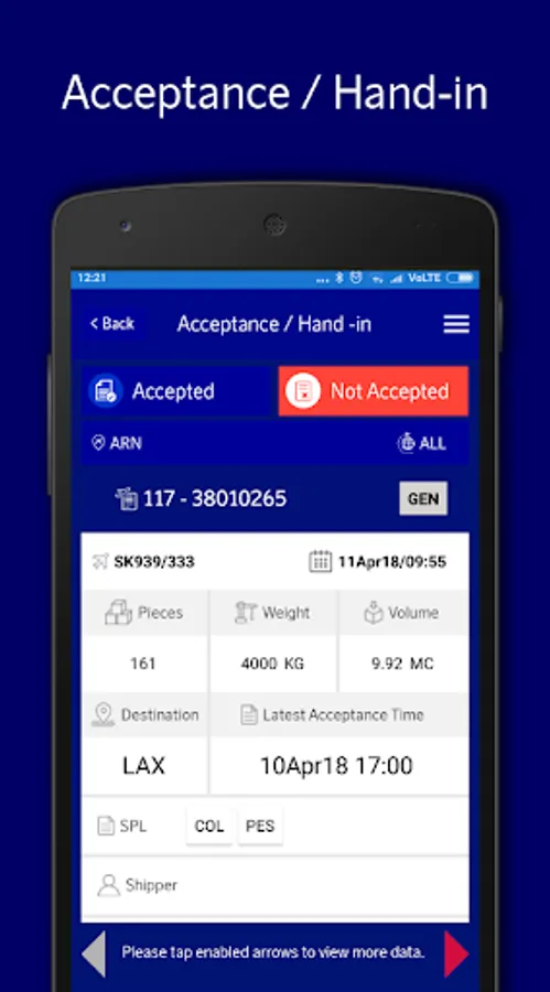 App to facilitate visibility and capture of SAS Cargo operations. It facilitates air freight operations from acceptance to delivery.