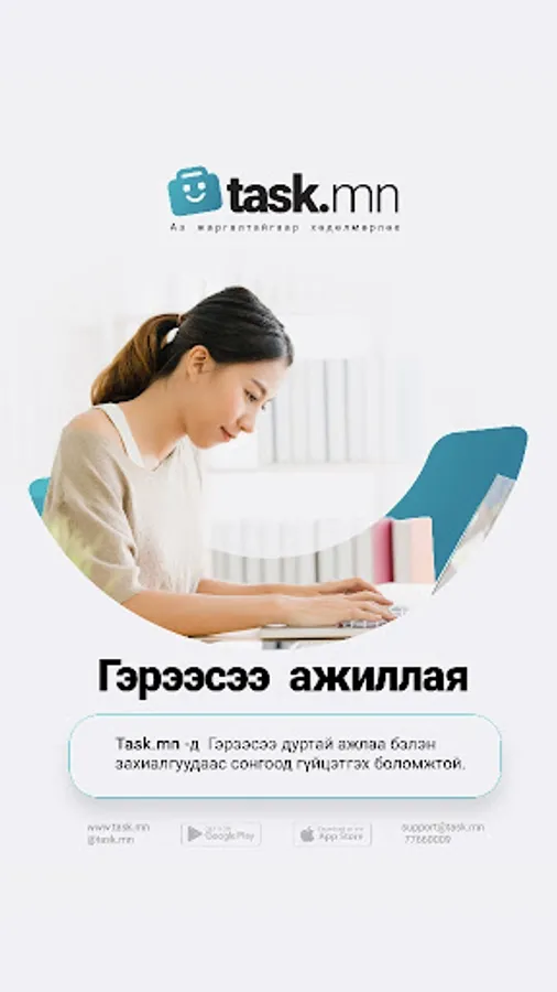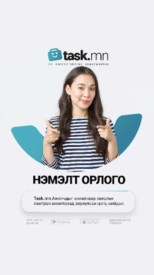 Task.mn is a system where the employer can hire employees online. It allows you to make payments, monitor performance and sign contracts online.