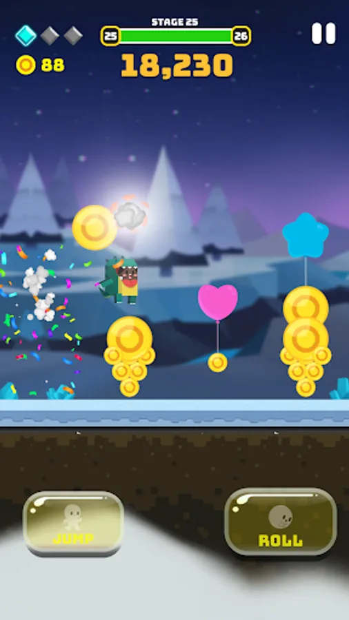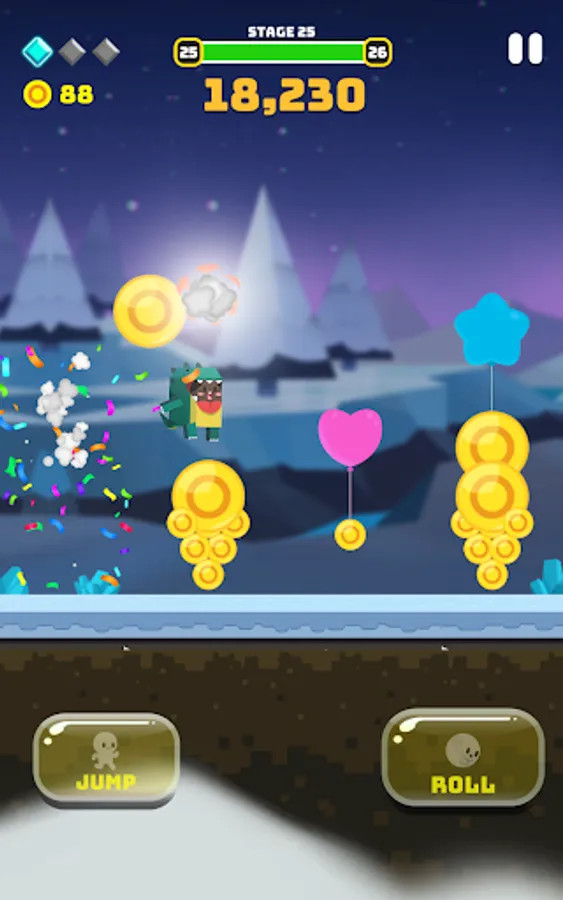 - Play various actions with a combination of jumping and rolling