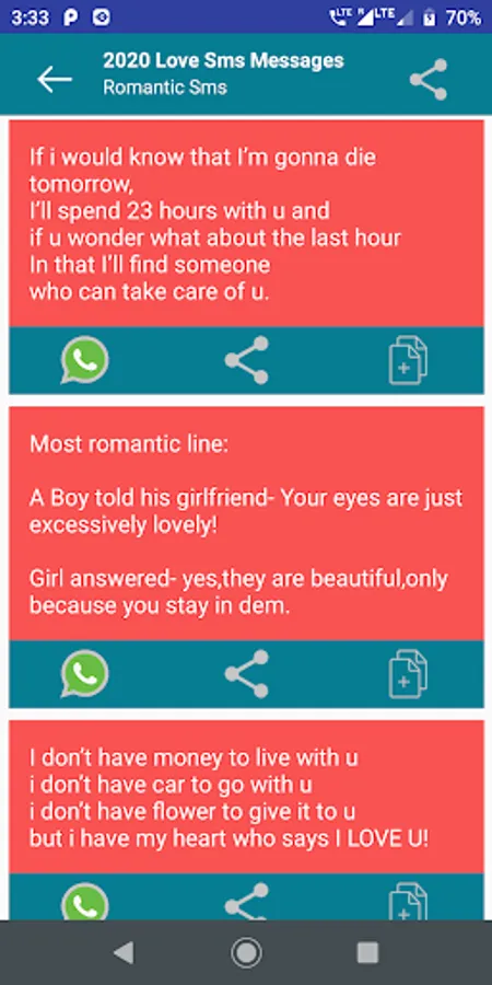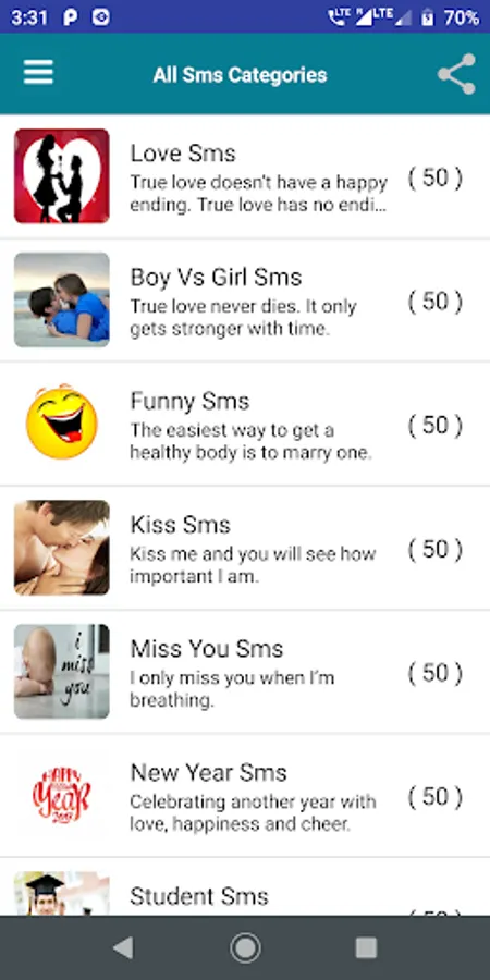 Find Out the one of the best Love SMS message here and its 100% free also no internet connection needed (completely offline messages) .We are provide latest message all time as per user requirement.