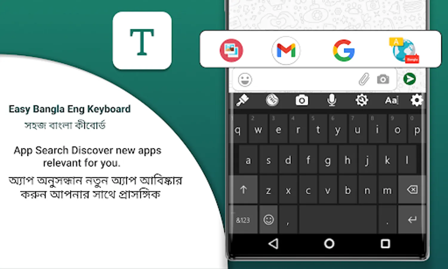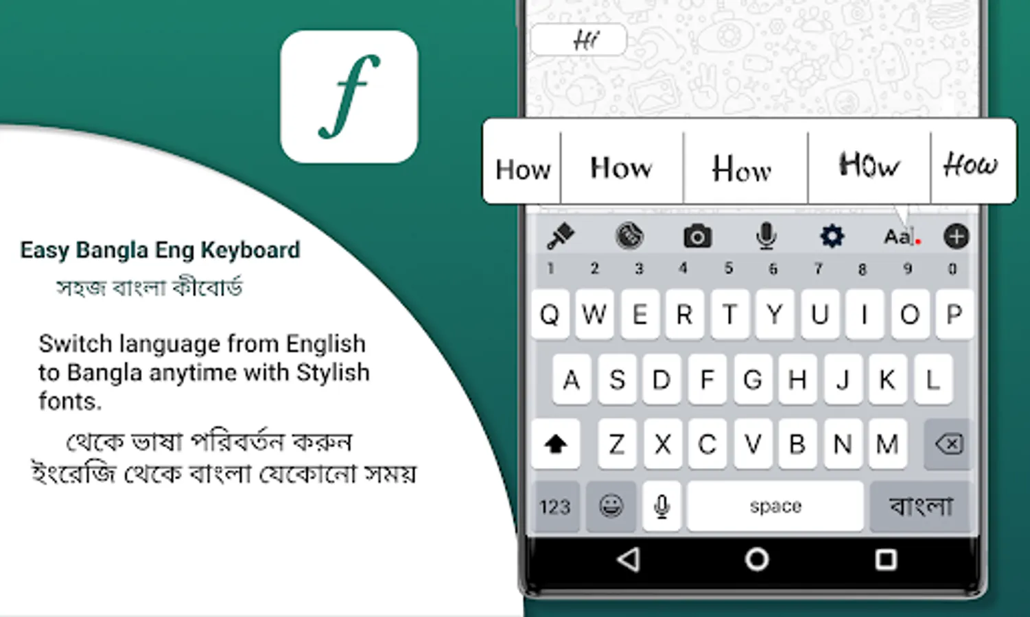 এখন আপনি যেকোনো অ্যাপে সহজেই বাংলা লিখতে পারবেন। এবং হ্যাঁ, এটা খুবই সহজ। এটিতে দুটি কীবোর্ডও রয়েছে, যাতে আপনি কীবোর্ড পরিবর্তন না করে ইংরেজিতে টাইপ করতে পারেন। রোমান ইংরেজি কীবোর্ড অবাধে টাইপ করুন এবং সঠিক বাংলা নাম স্বয়ংক্রিয়ভাবে প্রদর্শিত হবে। বৈশিষ্ট্য.