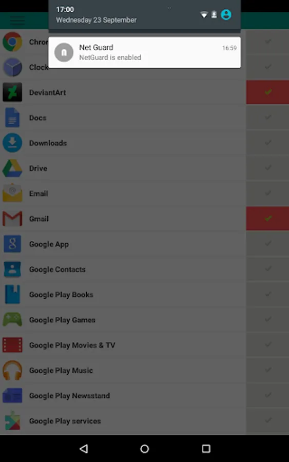 * You can enabled/disable NetGuard any time from notification or through widget.