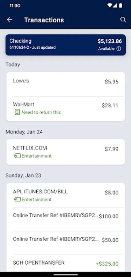 * Deposit checks in a snap by taking a picture of the front and back
