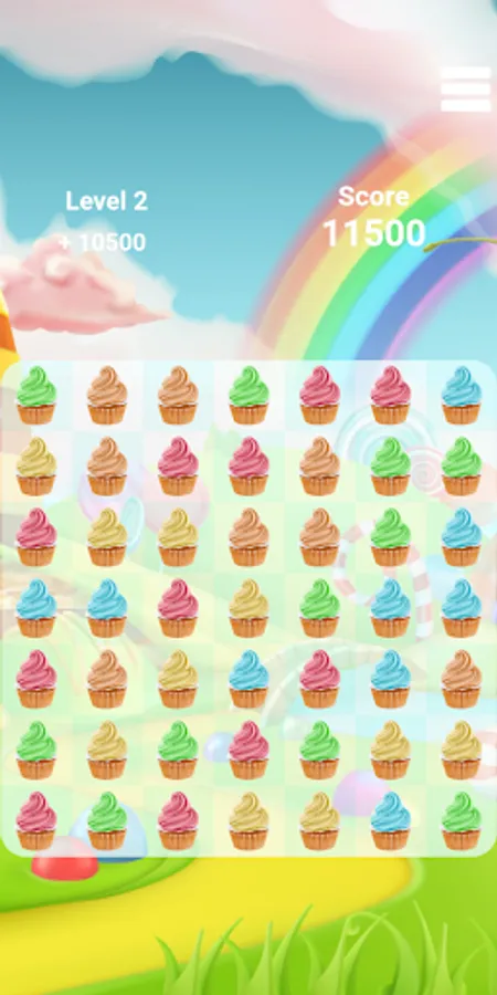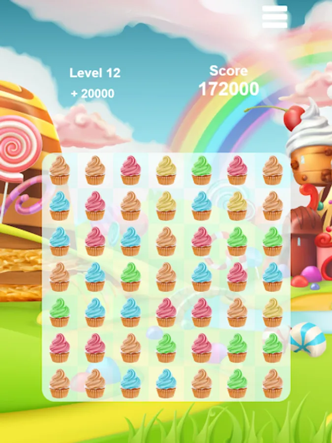 - Use the special white cupcake with sprinkles to remove all cupcakes of the same tone from the board.