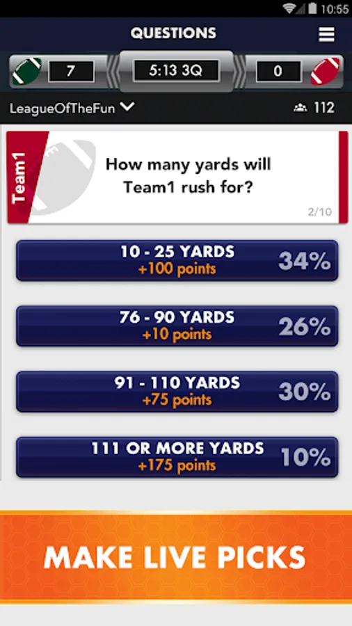 - There are 10 questions before the start of each game called “pre-game picks”.