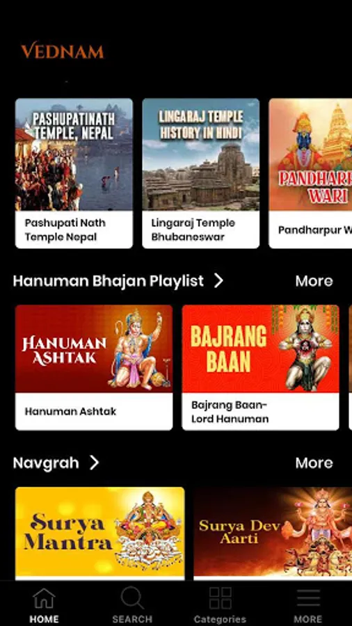 DEVOTIONAL MUSIC: Vednam also brings an ocean of devotional hymns which perfectly accompanies every mood. Be it traditional bhajans or shlokas from the Vedas, Durga Aarti or Hanuman Chalisa, or even the new generation’s 8D mantras; a wide range of music makes Vednam- a go to for every individual.