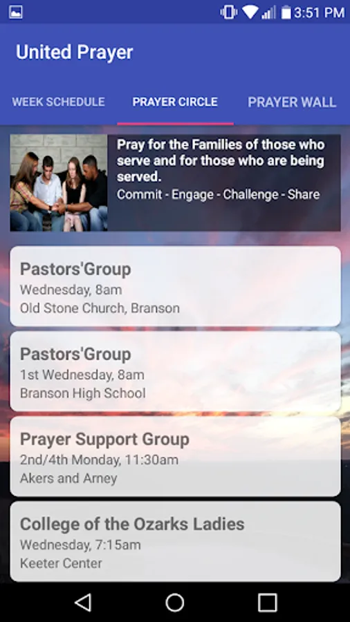 Branson, Missouri believes in the power of United Prayer. This app facilitates Prayer for Sectors in our community, the opportunity for you to connect with others in Prayer Circles, and a Prayer Wall for you to use to “agree with others” concerning specific prayer requests.