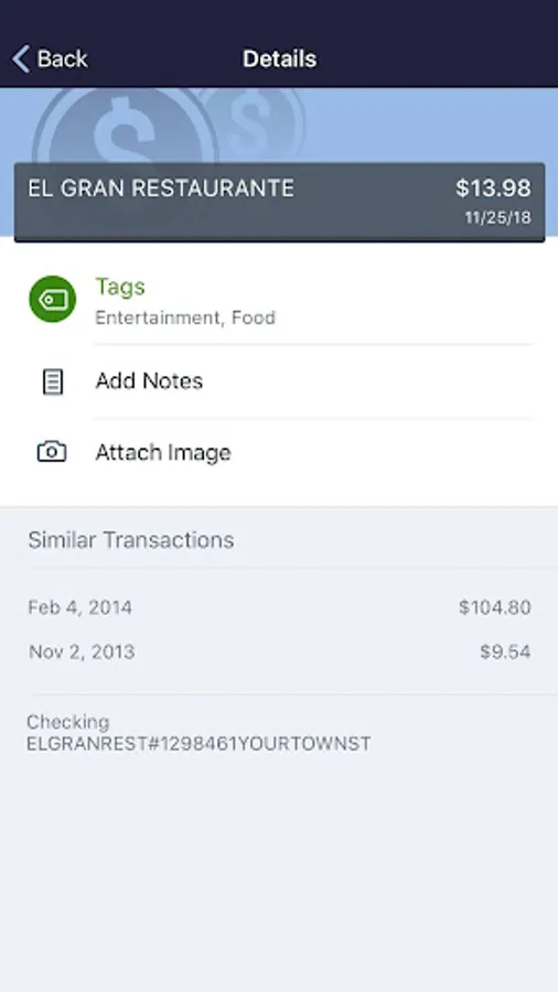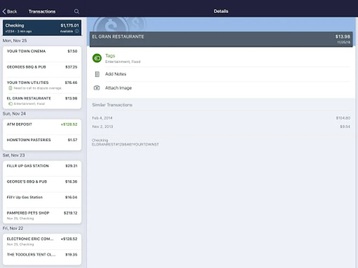 - Keep your transactions organized by allowing you to add tags, notes and photos