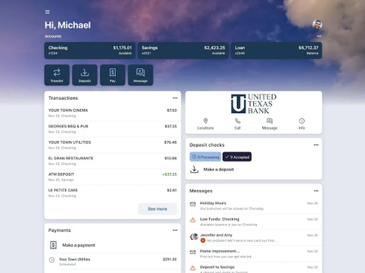 UTB Mobile Banking is your personal financial advocate. It’s fast, secure and makes life easier by empowering you with the tools you need to manage your finances.