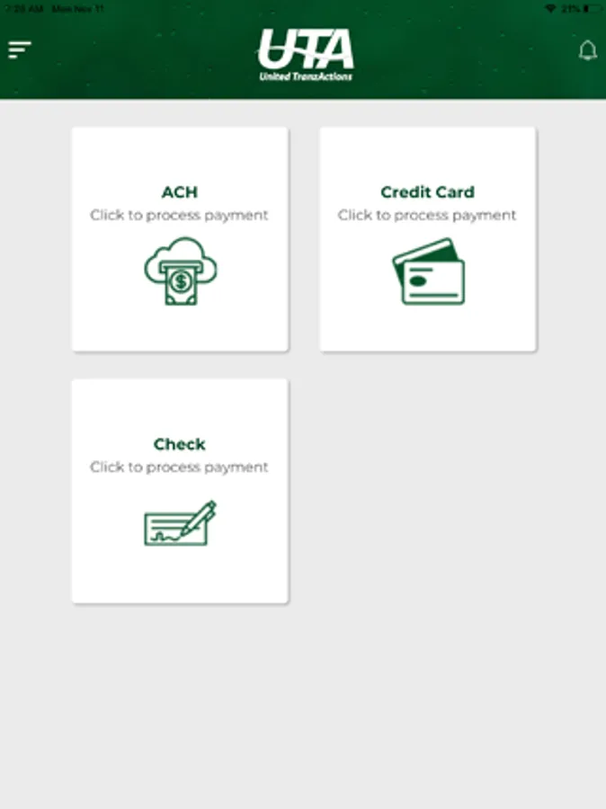 Process and deposit your company’s payments anytime, anywhere, 24/7 with UTA’s Mobile payment acceptance solution. Take advantage of all of the benefits that UTA’s payment acceptance solution has to offer, including Remote Deposit Capture (with Guarantee Settlement), Traditional Check Guarantee, ACH processing (with Guarantee Settlement), and Credit Card processing all from the convenience of your tablet or mobile device.