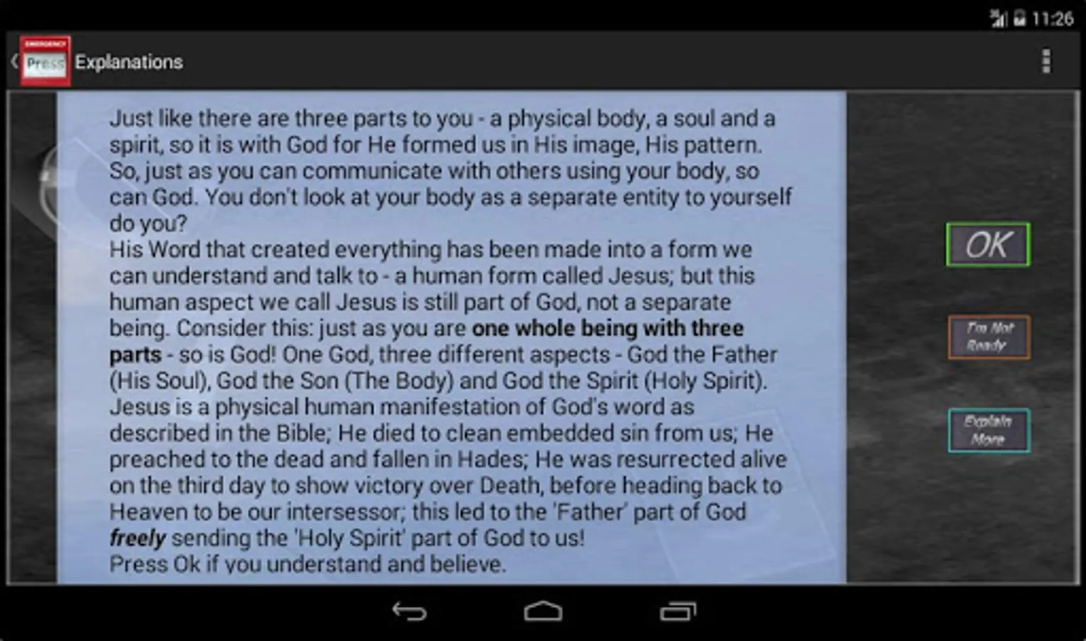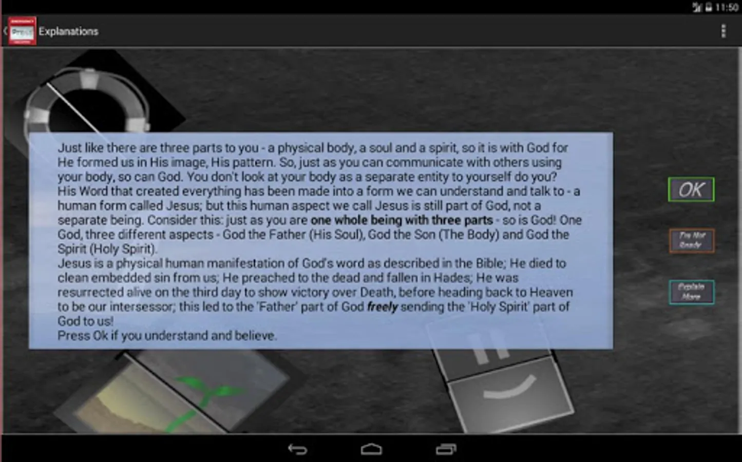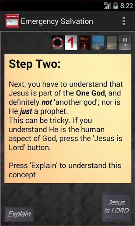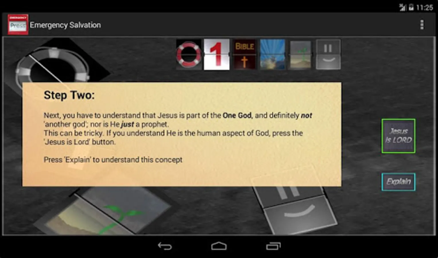 The idea for this app came to me as I was sitting with a lot of people and wondering how I could bring them to God in sixty seconds - for instance if an asteroid was about to hit the Earth, or Yellowstone had just blown up, or we'd just been invaded by aliens. What would I say? I realized that even as a Christian, I actually had no idea how to save people in an instant. Sure, I could try to talk to them all day; but quick? Sixty second Salvation? No idea.