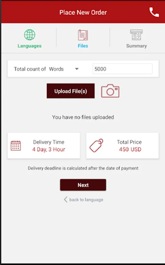 1- Simple user interface to enable you to order translation easily Translate into 120 languages