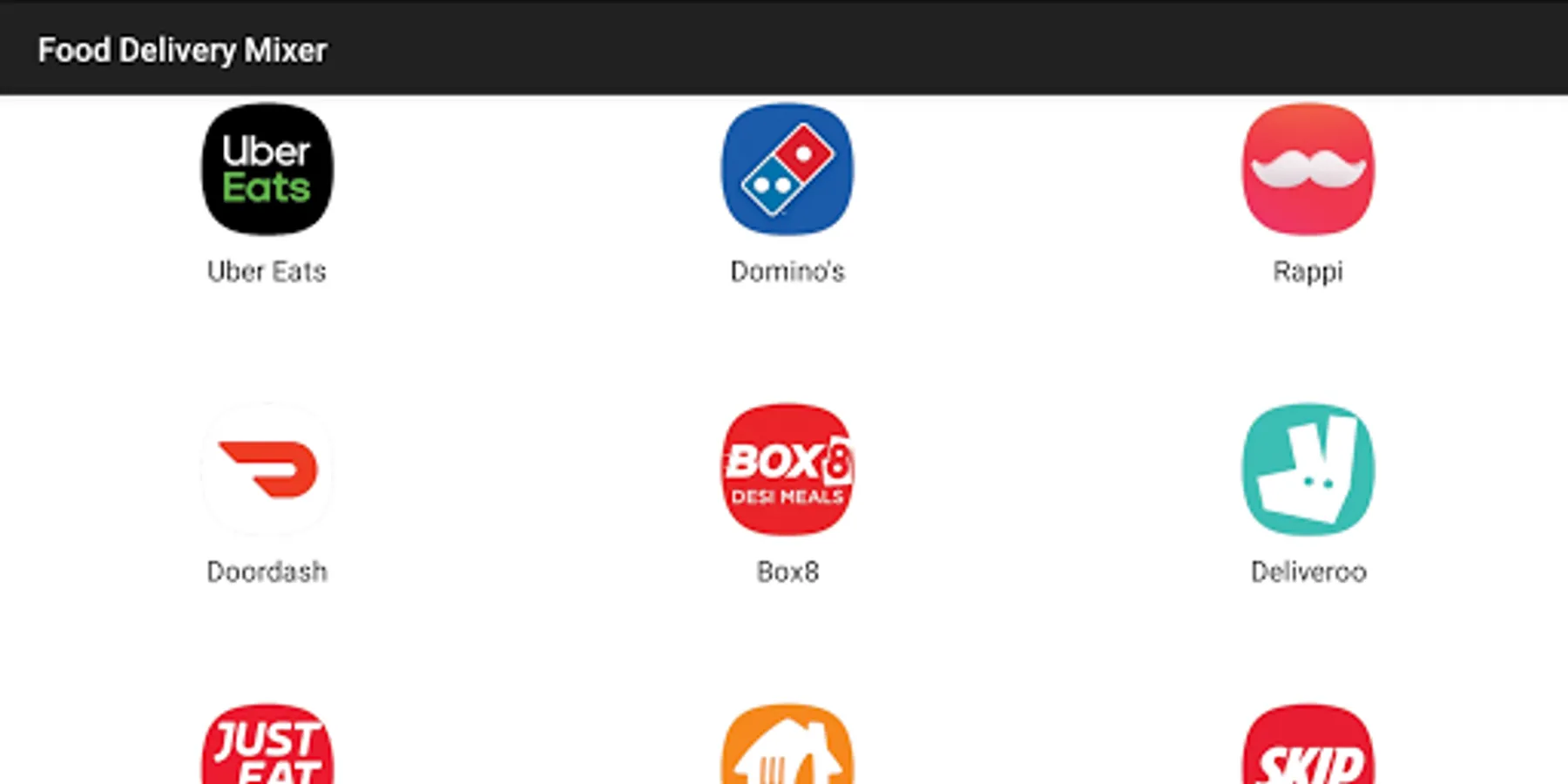 You Can Access All Food Delivery App in one App. In this App Worlds Top Most Online Food Delivery and Grocery Apps Added So not Require to Download Many App And Access All App.