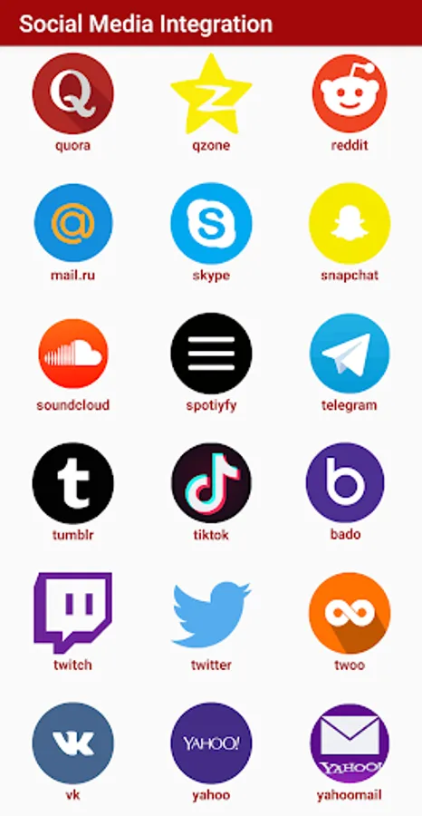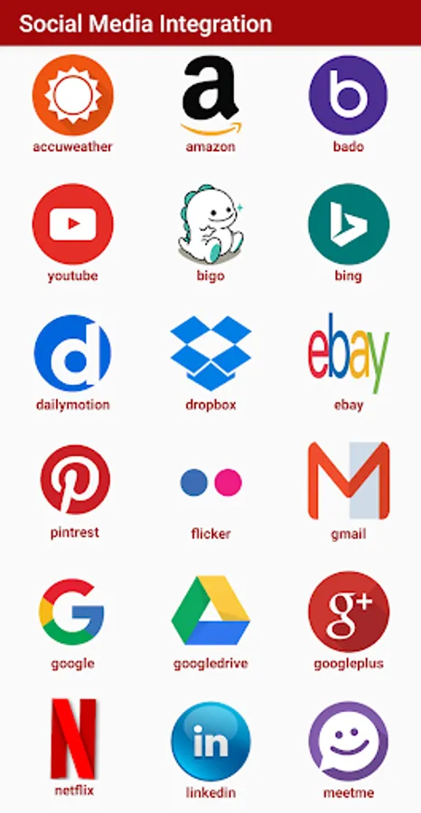 In Social Media Integration App You Can Access World's best Social App in our One App. Use of this app you can save your storage and integrate all social app in one app.