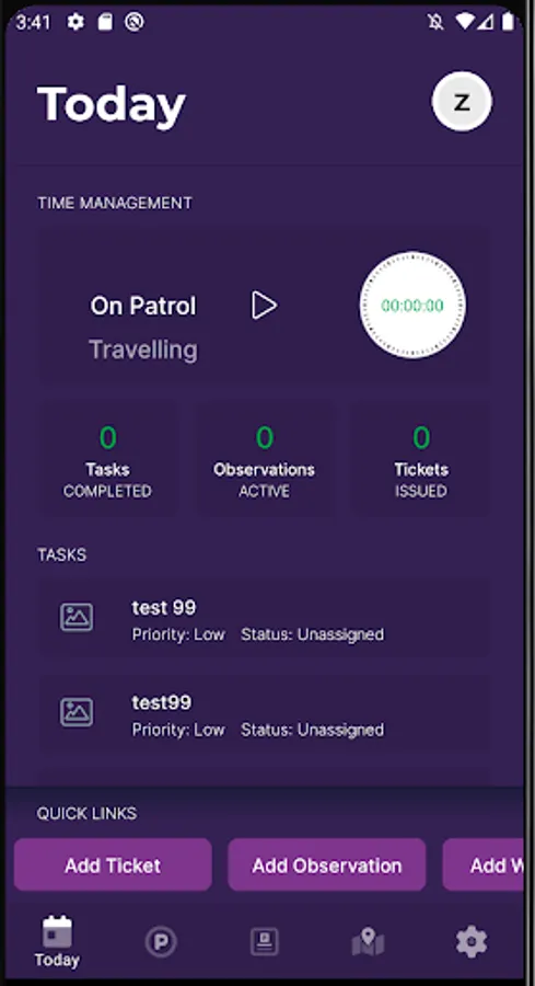 Real-time map overlays of operative movements are available in our Zatpark back office platform. Real-time and historic operative location tracking allows you to monitor the effectiveness and safety of your mobile workforce.