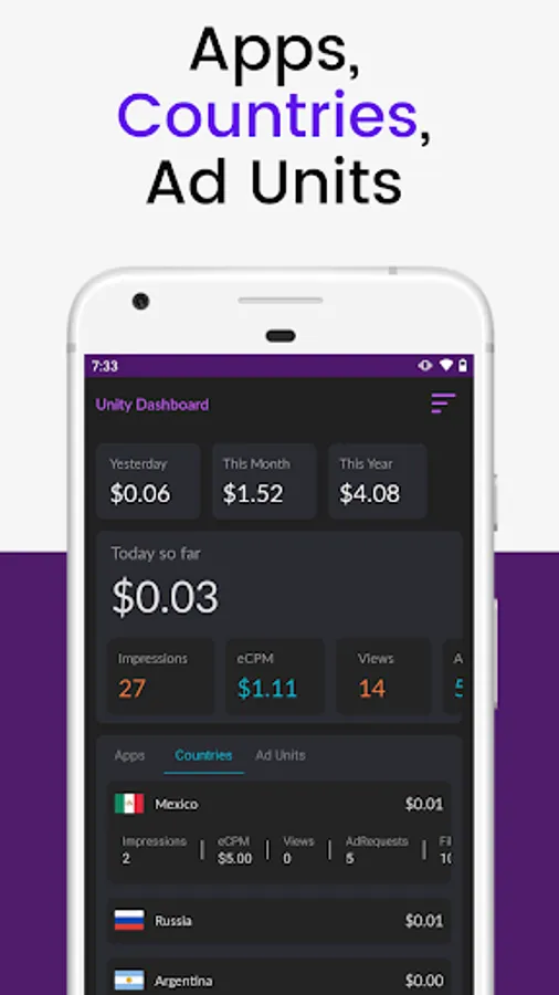 Now you can checkout units ads stats in your mobile with Dash app.