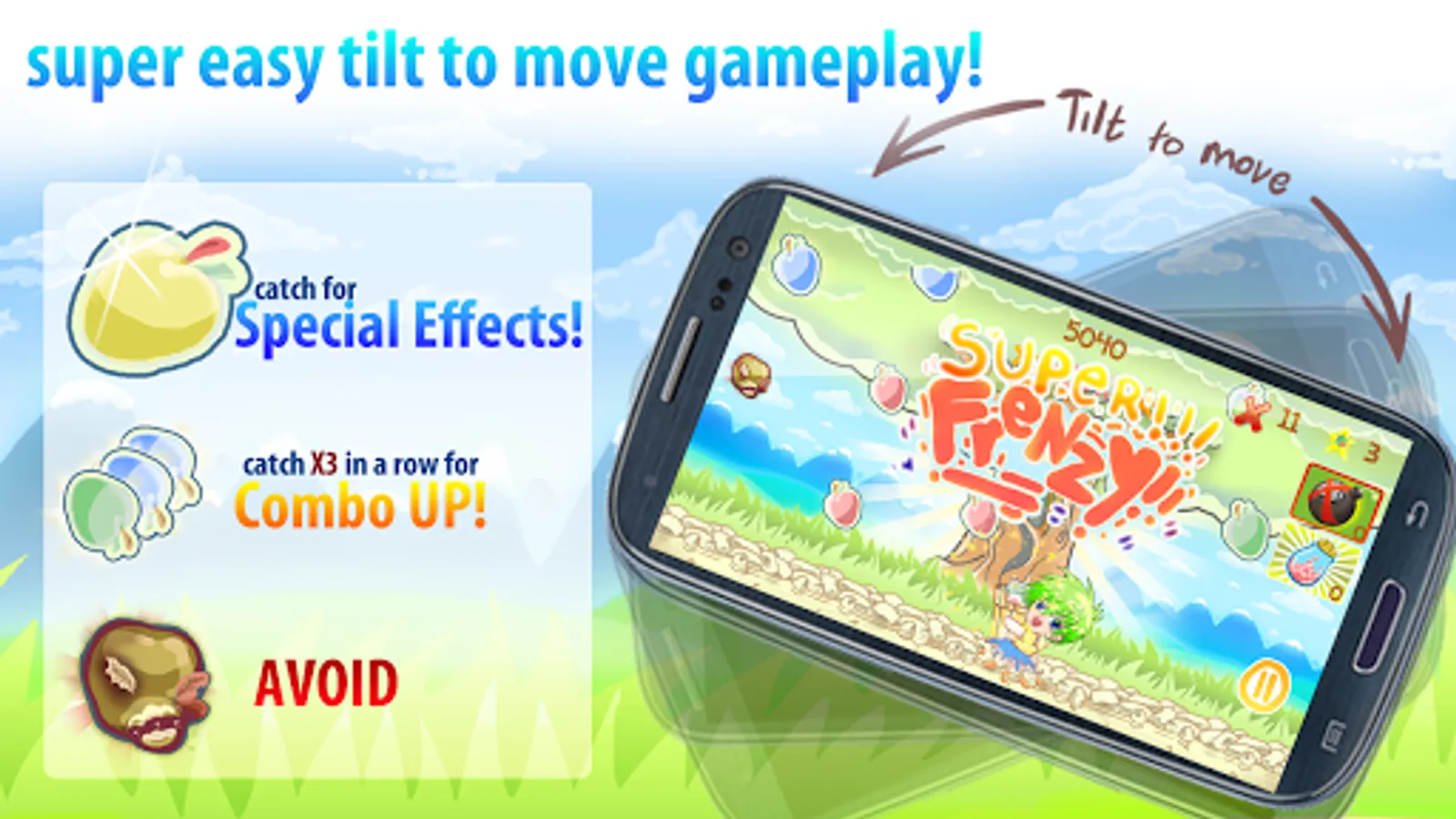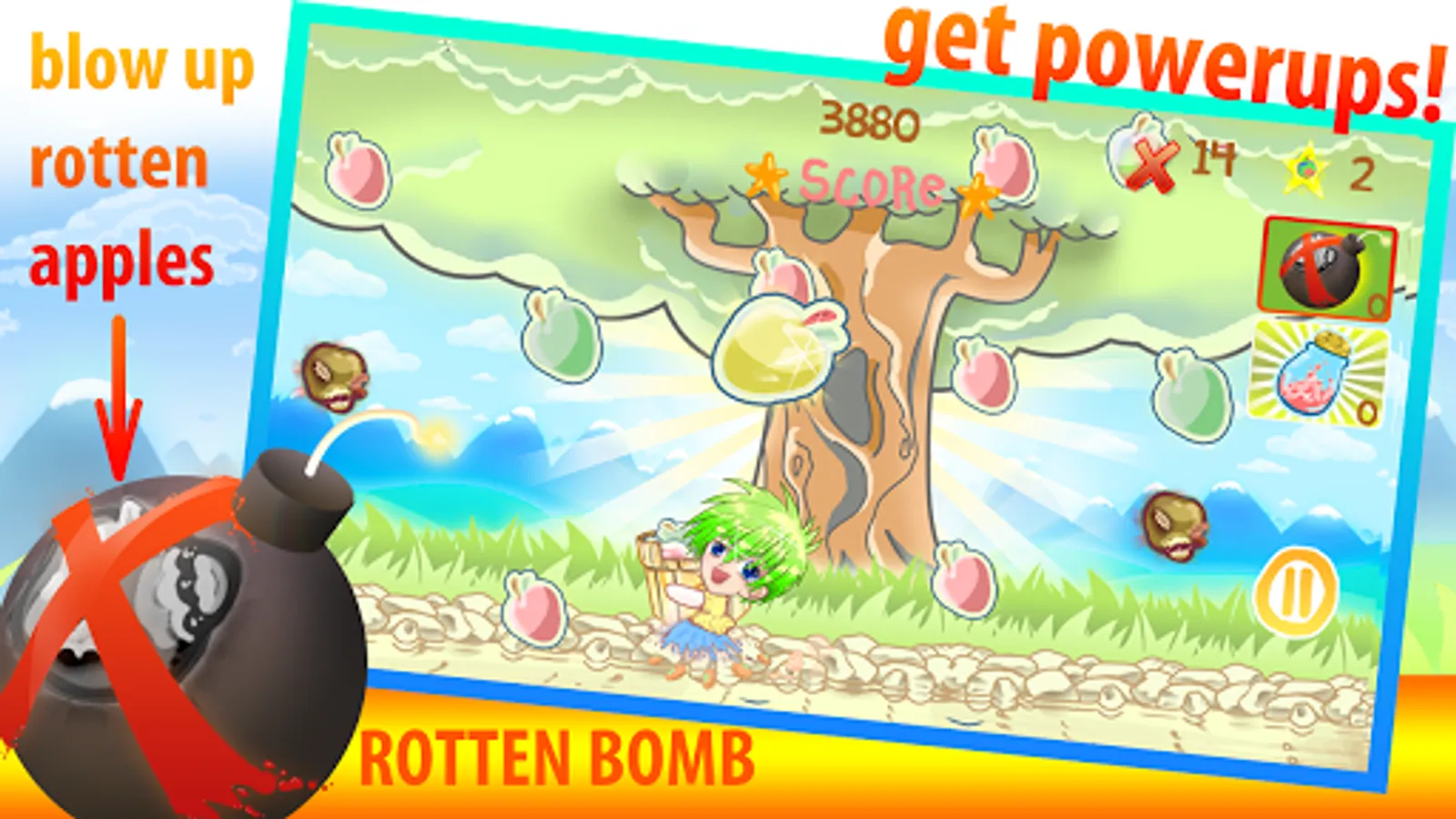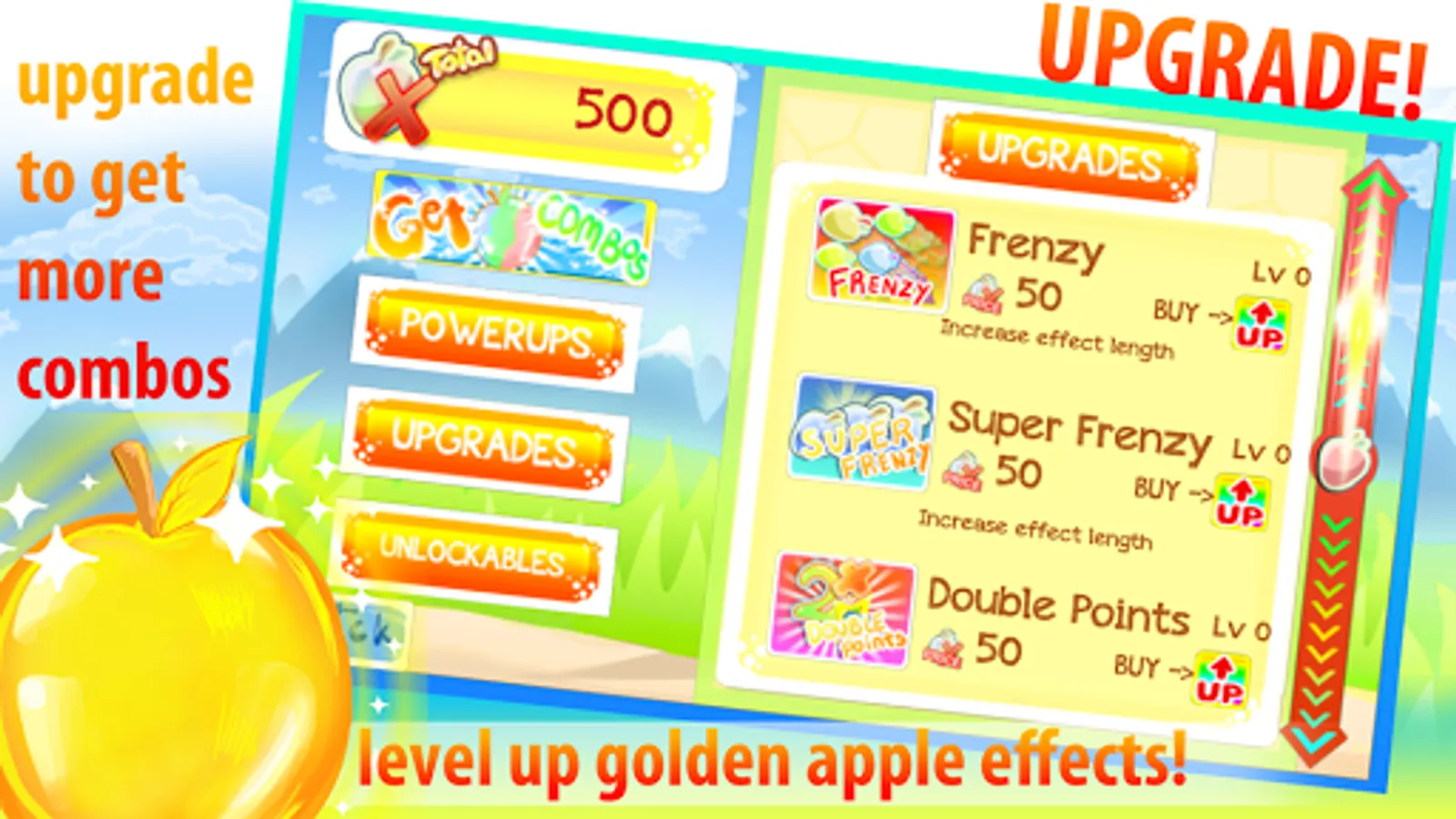 Catch 3 green or blue apples to earn a combo up, catch golden apples to activate cool combo effects.
