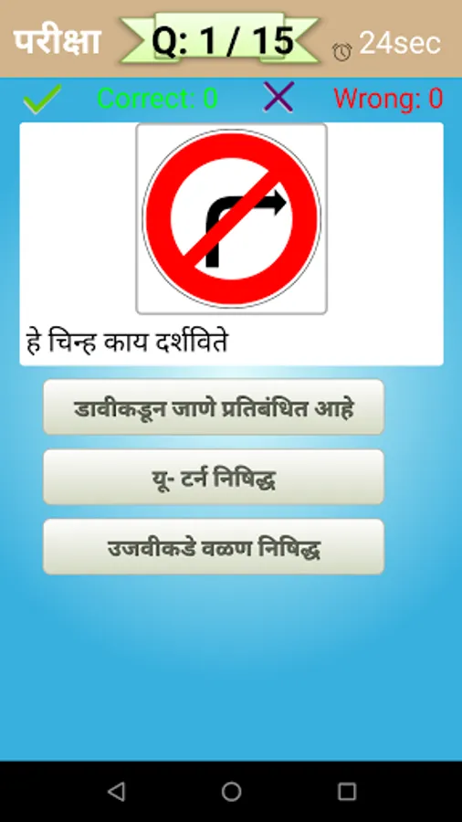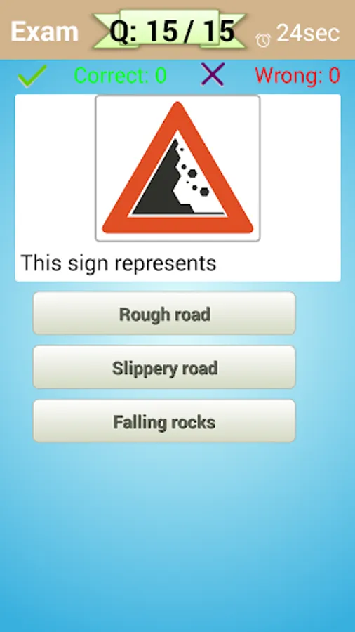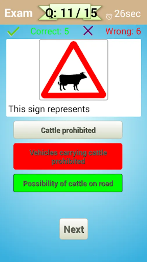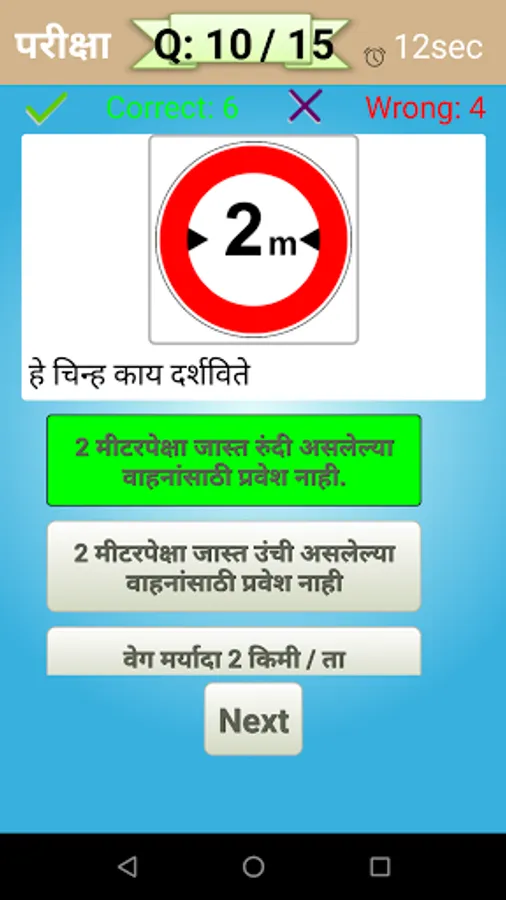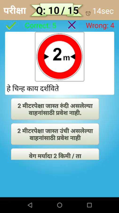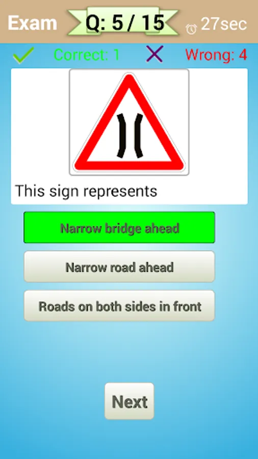 Within mock test, 15 Multiple choice questions are given with a choice of possible answers. You should make selection of right answer. Once completion of test, Pass or Fail result is displayed. Further you may continue to give more mock tests or quit exam.