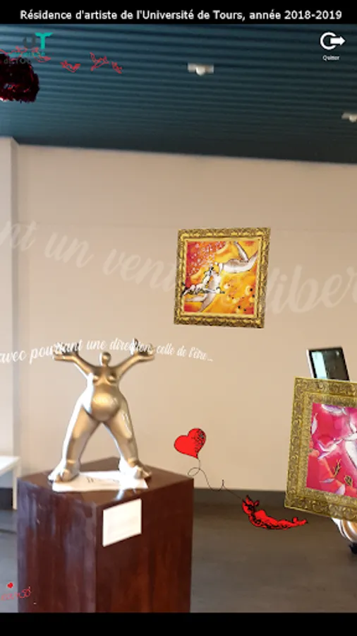 This mobile application of augmented reality was developed by the Laboratory of Fundamental and Applied Computer Science of Tours and students of the University of Tours, as part of the 2018-2019 artist residency of Laurence Dréano, visual artist from Tours, at the University of Tours. With the support of the County Council of Indre-et-Loire.