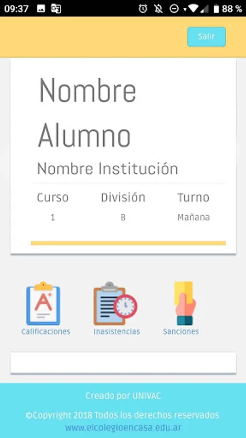 Self-management system for parents. You can access the information of students who are studying in the institutions that manage academic information through UNIVAC SGE. The app is oriented to the initial, primary and secondary levels. Depending on the level you can consult notes, absences and sanctions of the student.