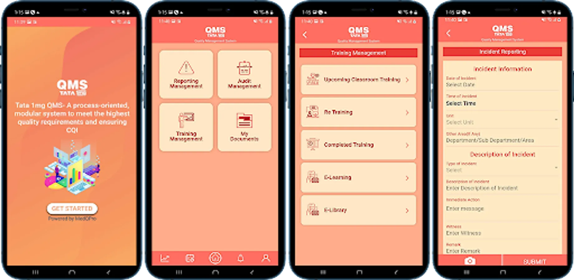 This app helps Quality Management Department to audit each location departments, machinery, incidents and train their employees for different medical assessment of Tata 1mg organization.