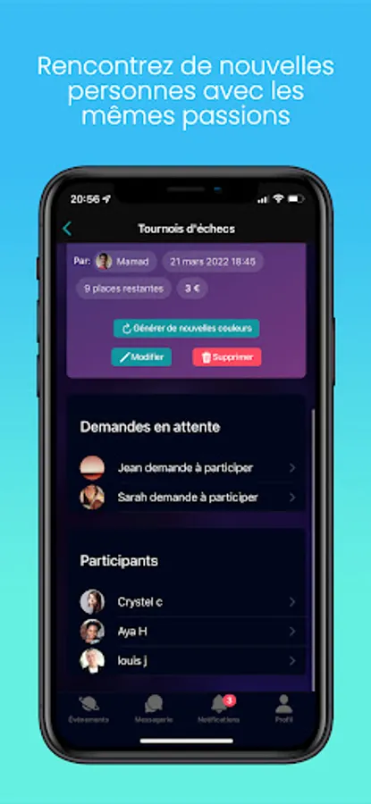 MeetLife is a connection app to create or participate in events at the inhabitant or elsewhere with a theme that each creator will choose. To put it simply, it is the “Airbnb of events”!