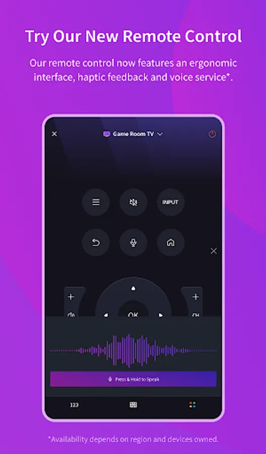 Vivid TV Remote is a virtual remote control for your smart TV. Vivid TV Remote can replace your traditional remote control and you can use the voice control function (only available in some countries and for some models).