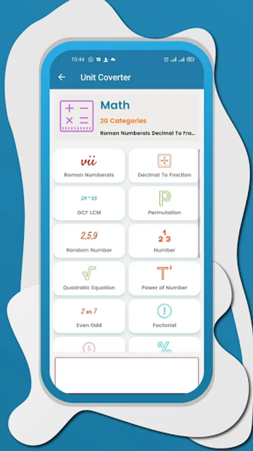 All kinds of Math Categories are also included in Universal Unit Converter.