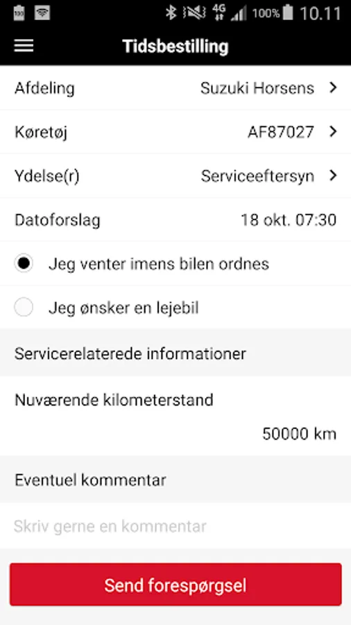 • Opret din bil i garagen, så tidsbestilling hurtigt kan klares fra mobilen.