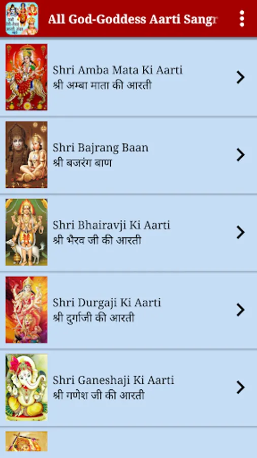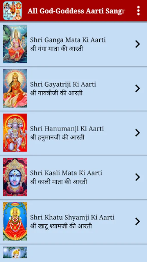 'All God-Goddess Aarti Sangrah' provides most famous Hindu God-Goddess Aarti at one place. This app is for all religious people who want to hear all God-Goddess Aarti at a single place with complete devotion.