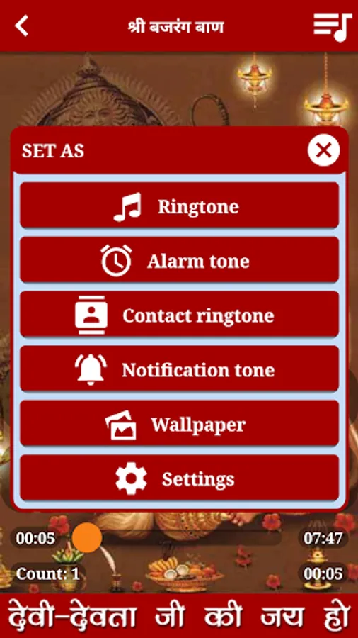 ★ Set the current Aarti as Phone ringtone, Alarm tone, Contact ringtone, and Notification tone.