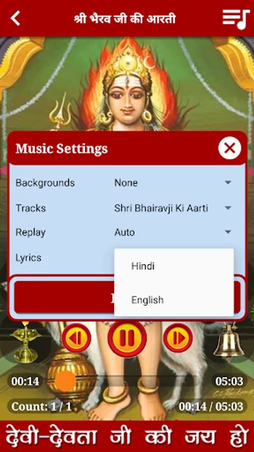 ★ Lyrics for each Aarti in Hindi & English launguage.