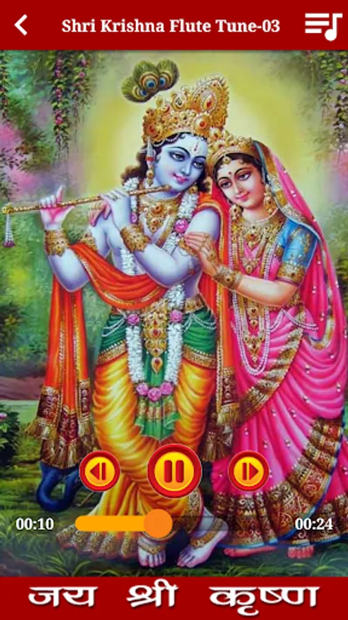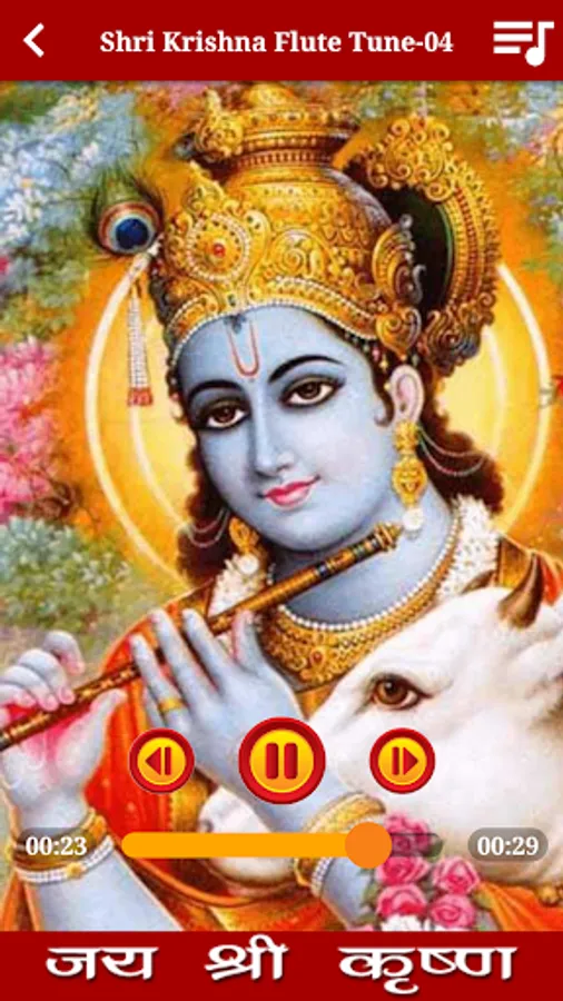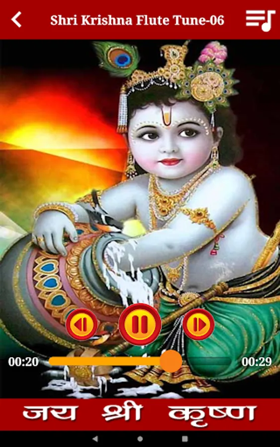 ★ Show current & total time with title of current Lord Krishna Flute Tunes & Sounds.