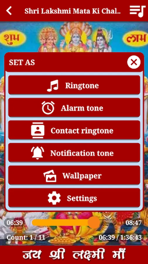 So download 'Laxmi Amritwani Aarti, Chalisa' app and easily set high definition Goddess Shri Laxmiji Ki Amritwani, Aarti, Chalisa and wallpapers as Ringtone, Alarm tone, Contact Ringtone, Notification tone and wallpaper.