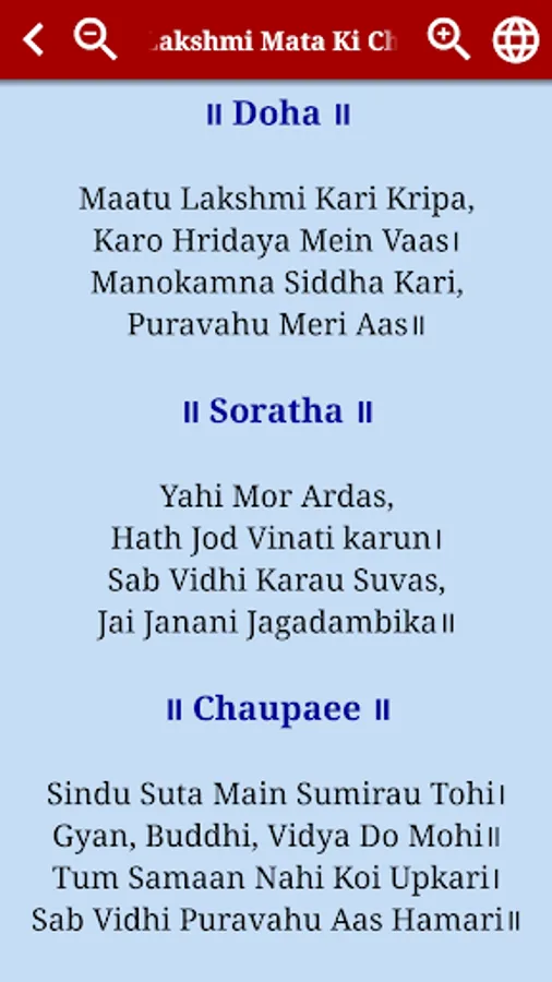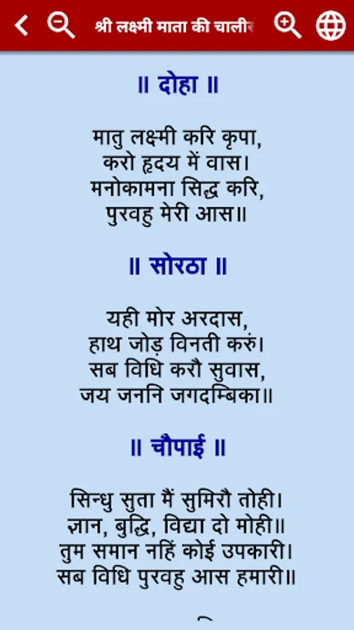 Lakshmi Chalisa is a forty verse prayer dedicated to Maha Lakshmi, the goddess of wealth and prosperity. Shri Laxmi Chalisa is believed to have been composed by Sundardasa.