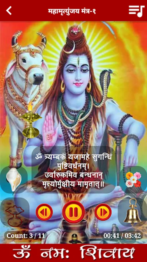 This app is for all religious people who want to hear and chant Maha Mrityunjaya Mantra, Lord Shri Shiva Mantra & Om Mantra at a single place with complete devotion.