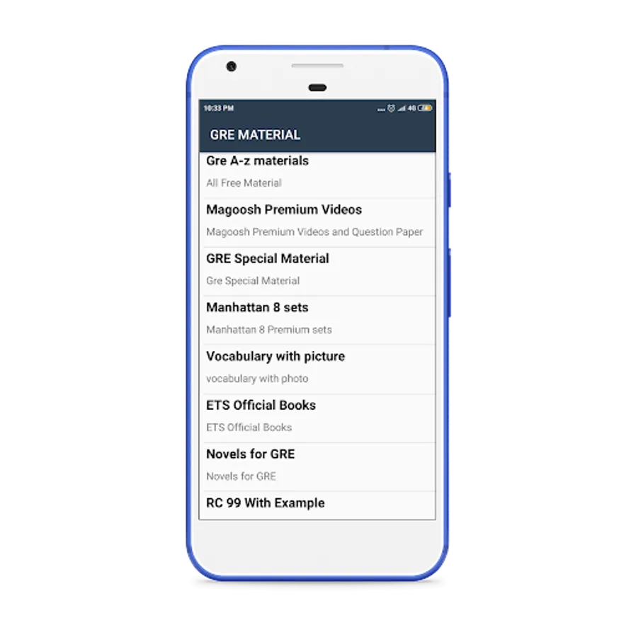 We also provide SOP and LOR sample and how to make it, Vocab with Pictures , Full VISA Process, practice test, Full test, quant book, verbal book.